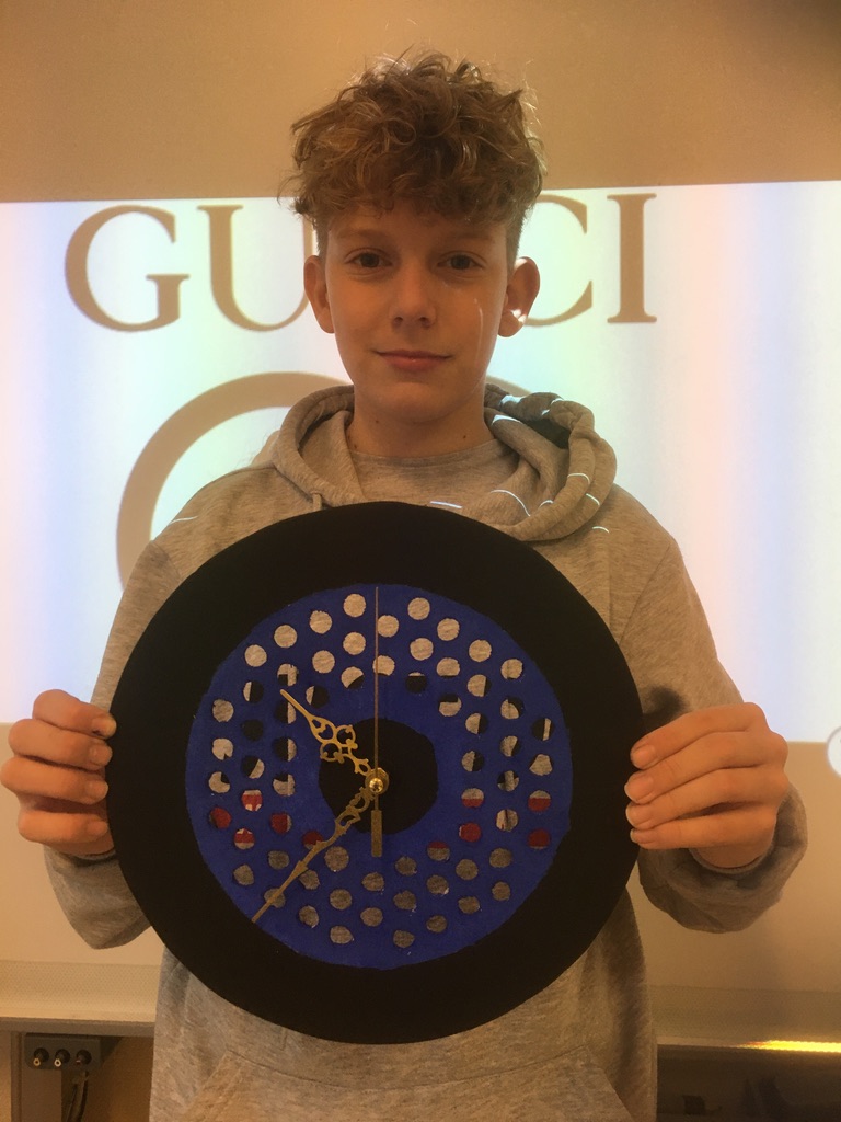 Im Werkunterricht gestalteten die Schüler der 3b Wanduhren nach ihren eigenen Vorstellungen. Mit großer Präzision, viel Geduld und größer Mühe entstanden wirklich schöne Stücke.