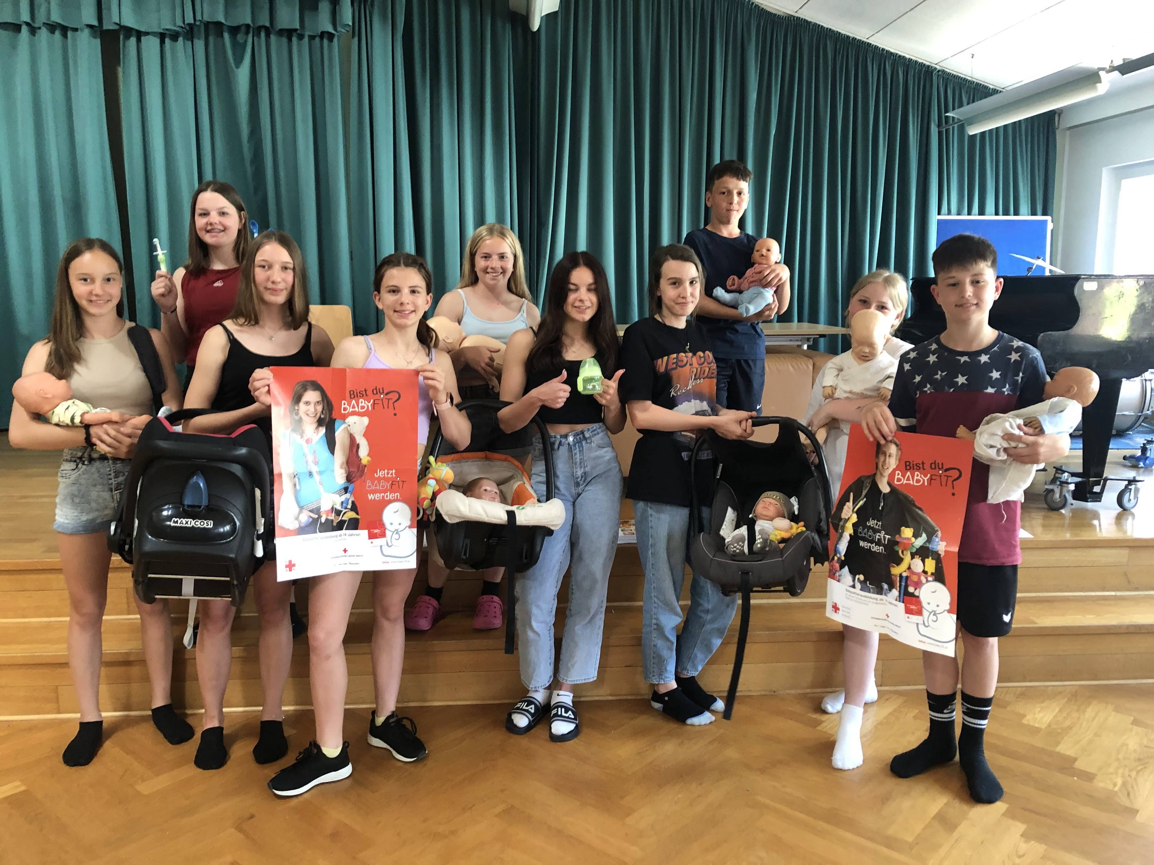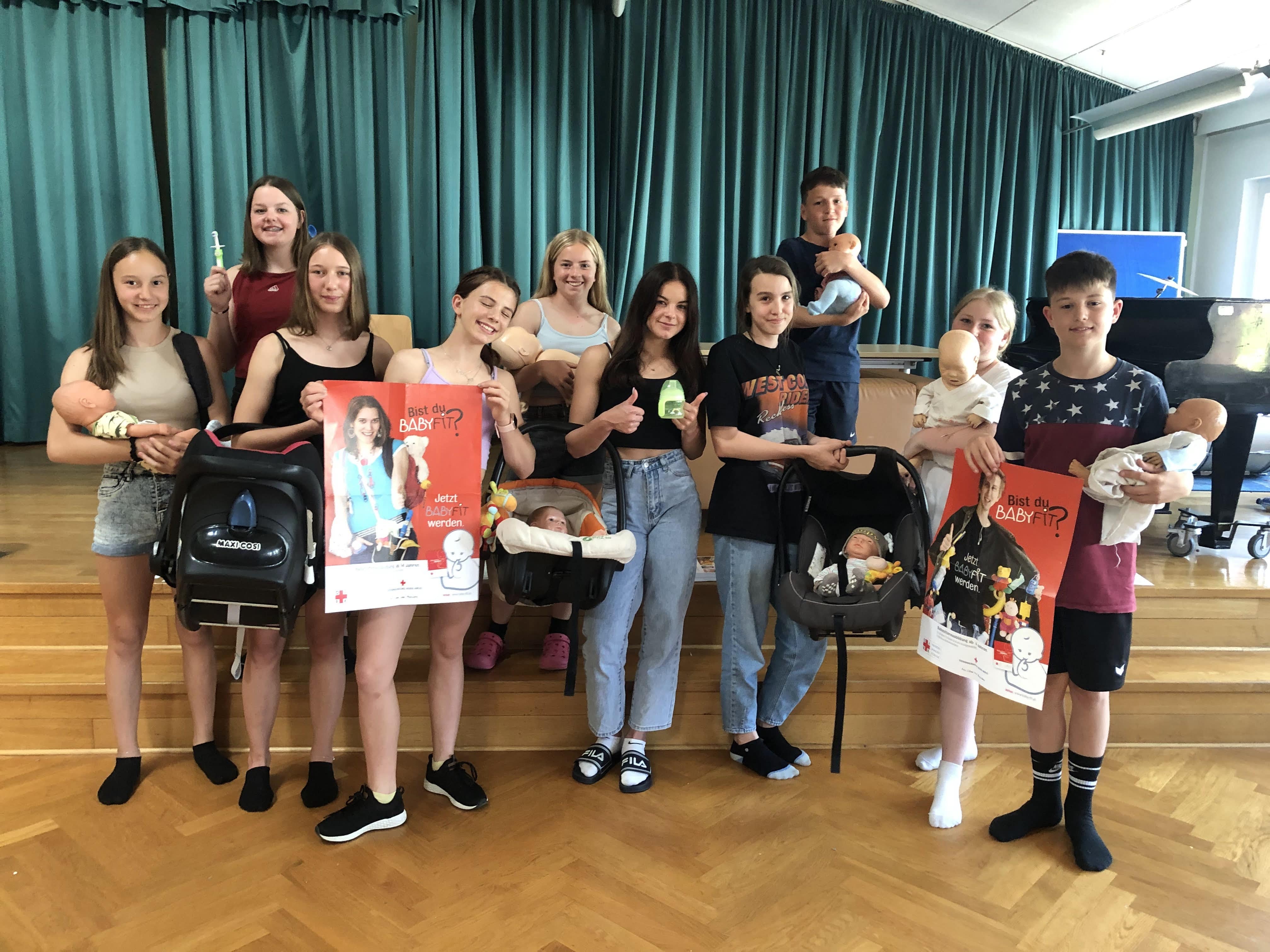 In einem 16-stündigen BabyFit-Kurs wurden 11 Mädchen und 2 Burschen bestens über die Entwicklung von Geburt bis zum Jugendalter, das Spielen, die Ernährung, Schlafen und Ruhen, die Pflege und über rechtliche Grundlagen geschult. Auch wurden sie als Lebensretter ausgebildet. Die Babysitter:innen haben ihr Können an lebensechten Babypuppen geübt. Es wurden Fläschchen zubereitet, gewickelt, gefüttert und gebadet. Wir wünschen unseren Babysitter:innen viel Erfolg mit ihrer neuen Aufgabe!